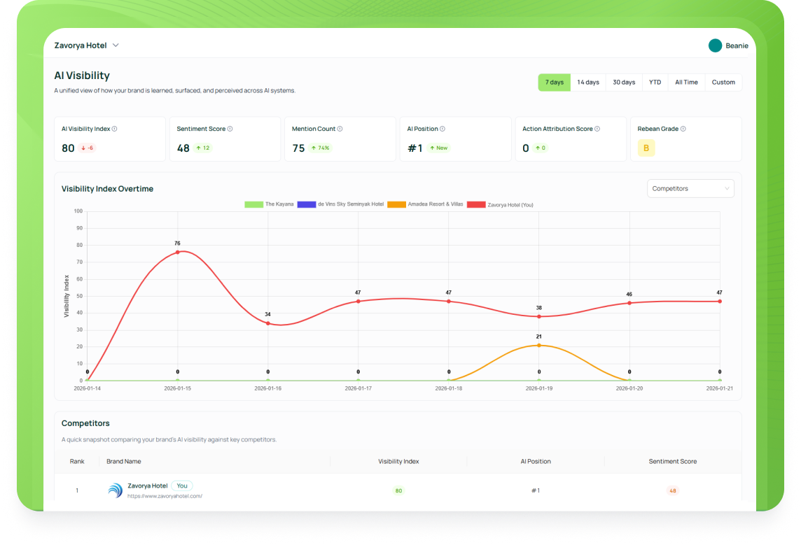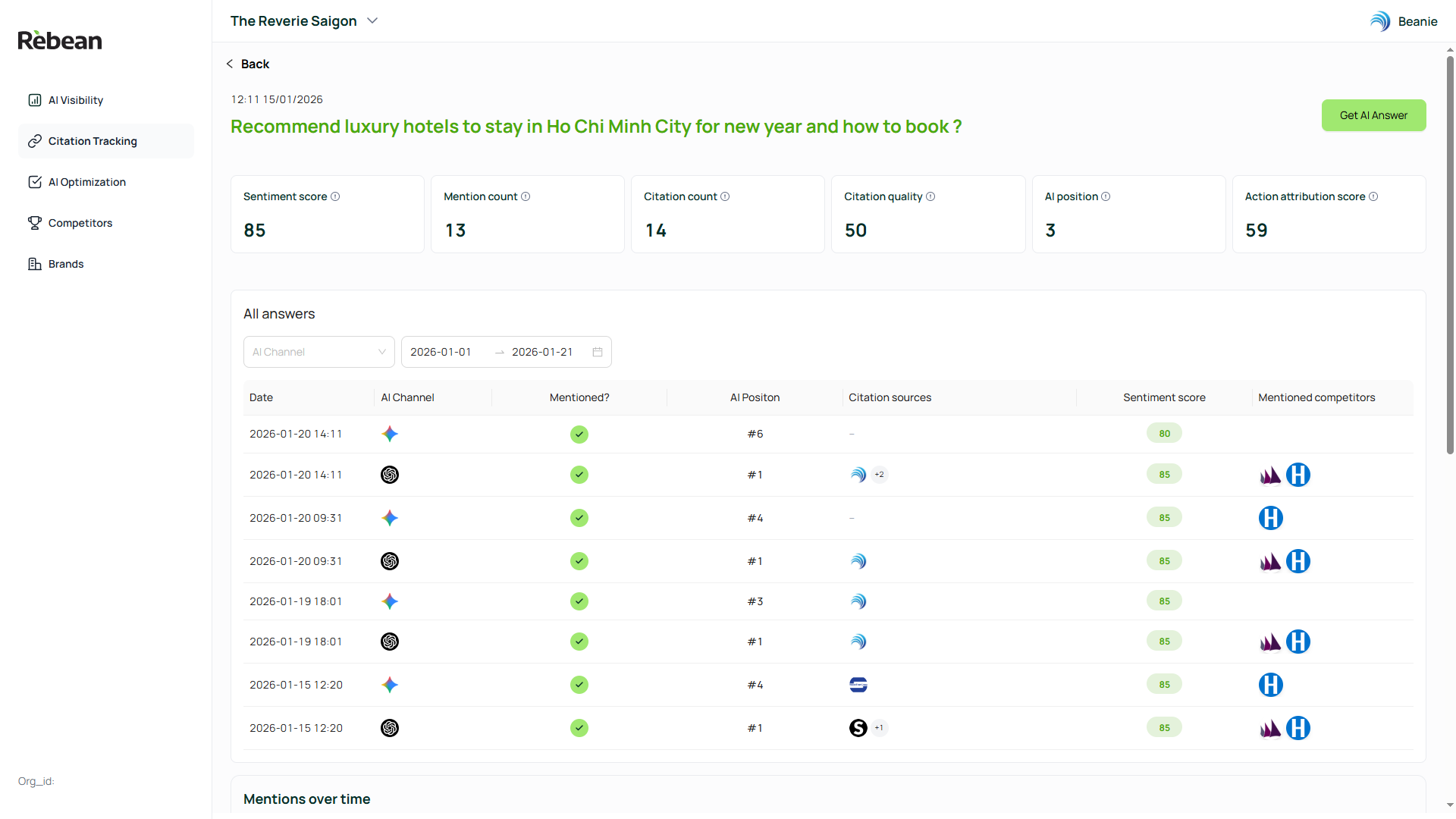 Rebean can help you discover untapped direct booking revenue hidden inside AI answers about your hotel.