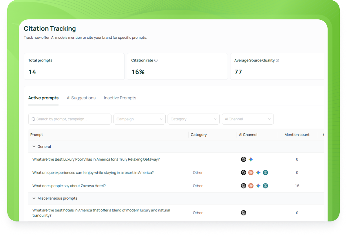 Rebean lets you view real AI-generated answers about your brand through live prompt testing.